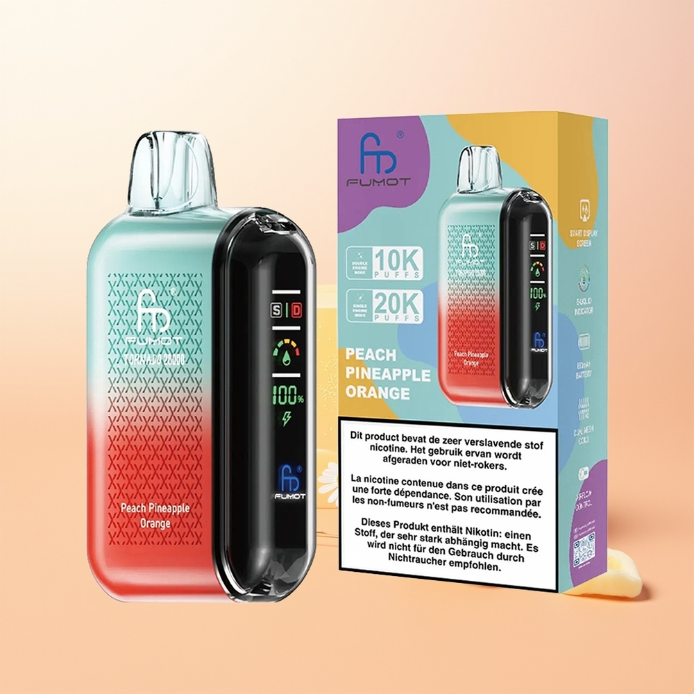 Fumot Tornado 20000 خوخ أناناس برتقال مع بطارية قابلة للشحن وشاشة ذكية