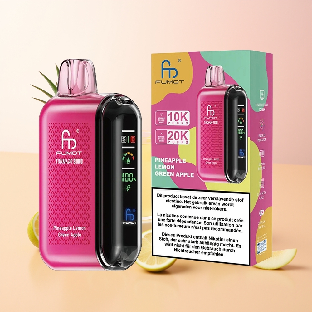 Fumot Tornado 20000 أناناس ليمون تفاح أخضر مع بطارية قابلة للشحن وملف مزدوج