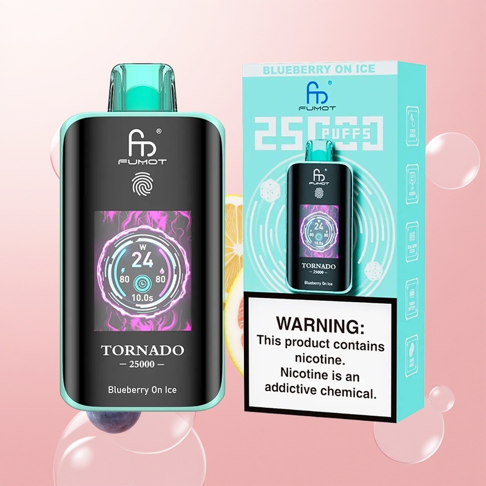Fumot Tornado 25000 التوت البري على الثلج مع شاشة عالية الدقة وبطارية قابلة للشحن