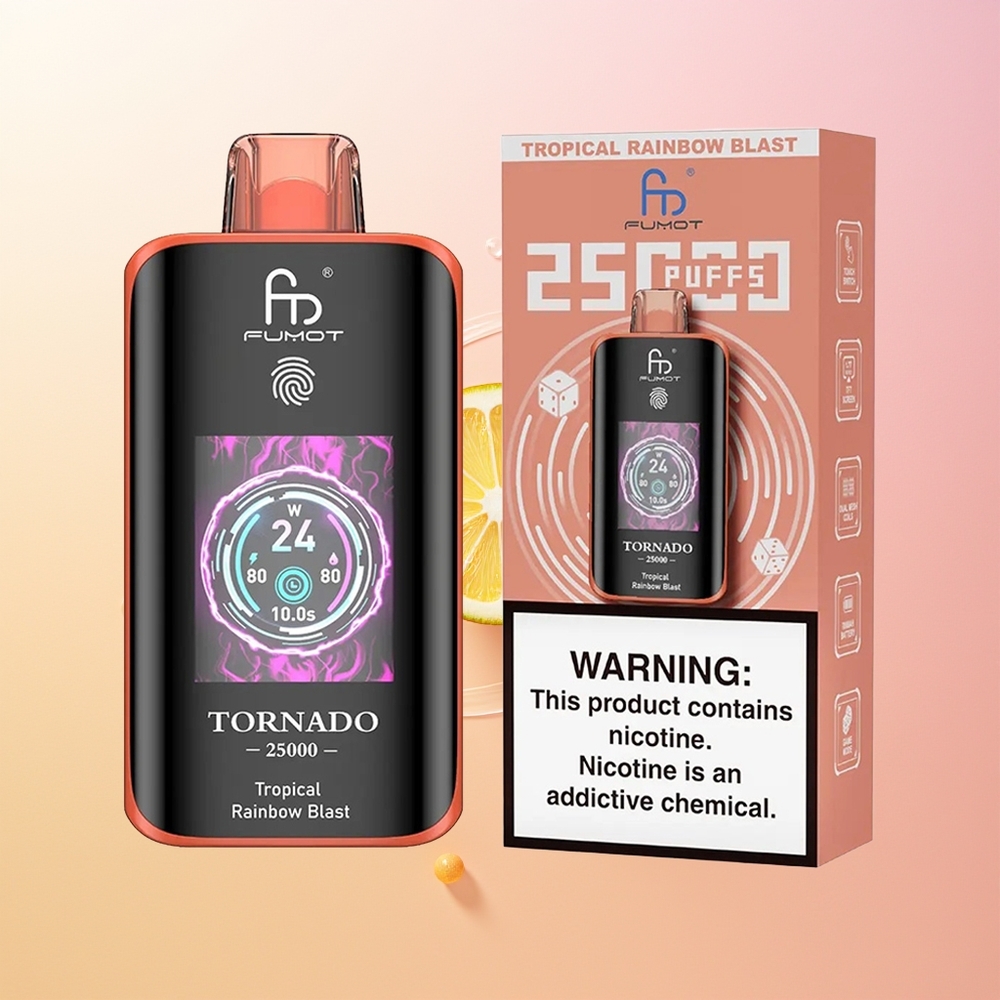 Fumot Tornado 25000 انفجار قوس قزح الاستوائي مع شاشة عالية الدقة وبطارية قابلة للشحن