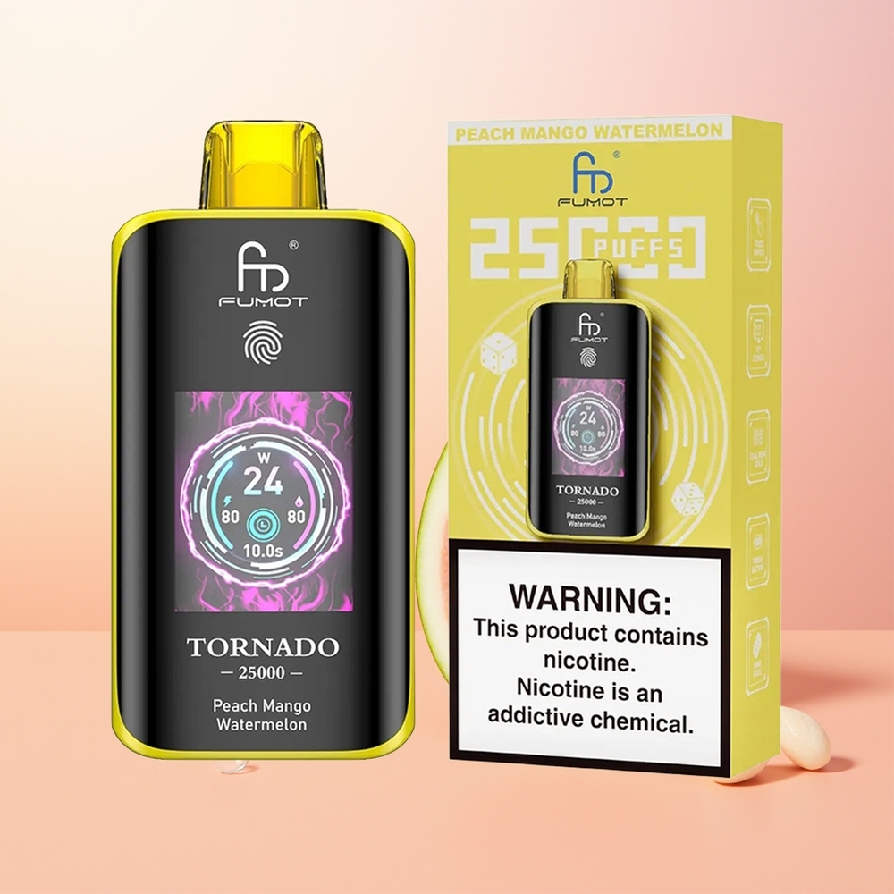 Fumot Tornado 25000 خوخ مانجو بطيخ بشاشة عالية الدقة وبطارية قابلة للشحن