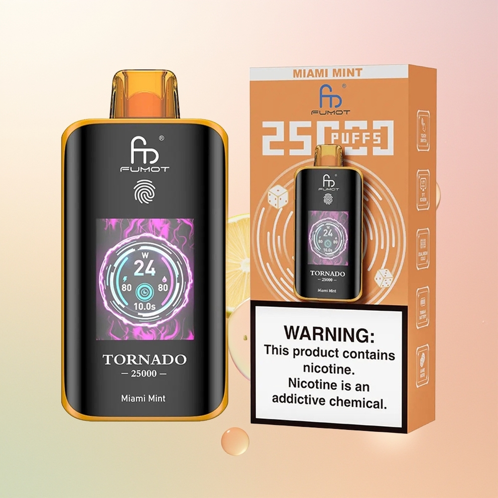 Fumot Tornado 25000 نعناع ميامي شاشة عالية الدقة وبطارية قابلة للشحن