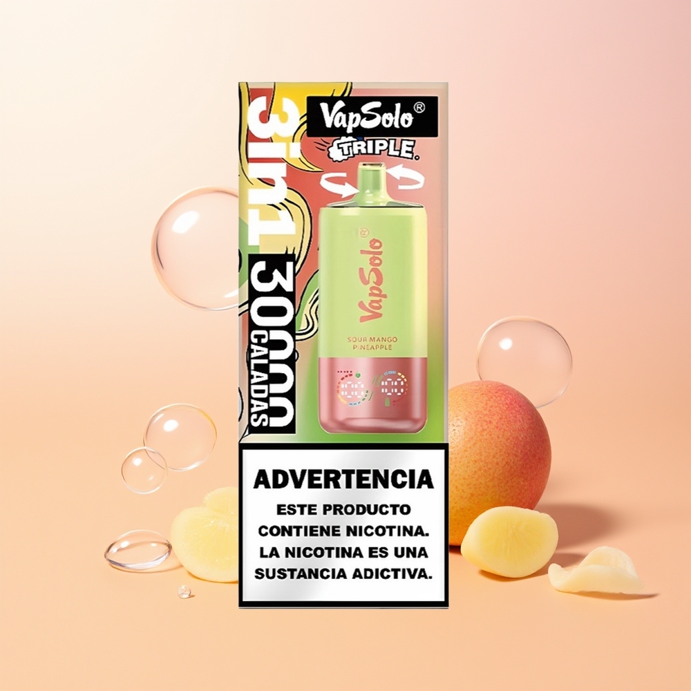 الرئيسية| الوافدون الجدد| VAPSOLO| Vapsolo Triple 30000| Vapsolo Triple 30000 مانجو حامض أناناس 40 مل